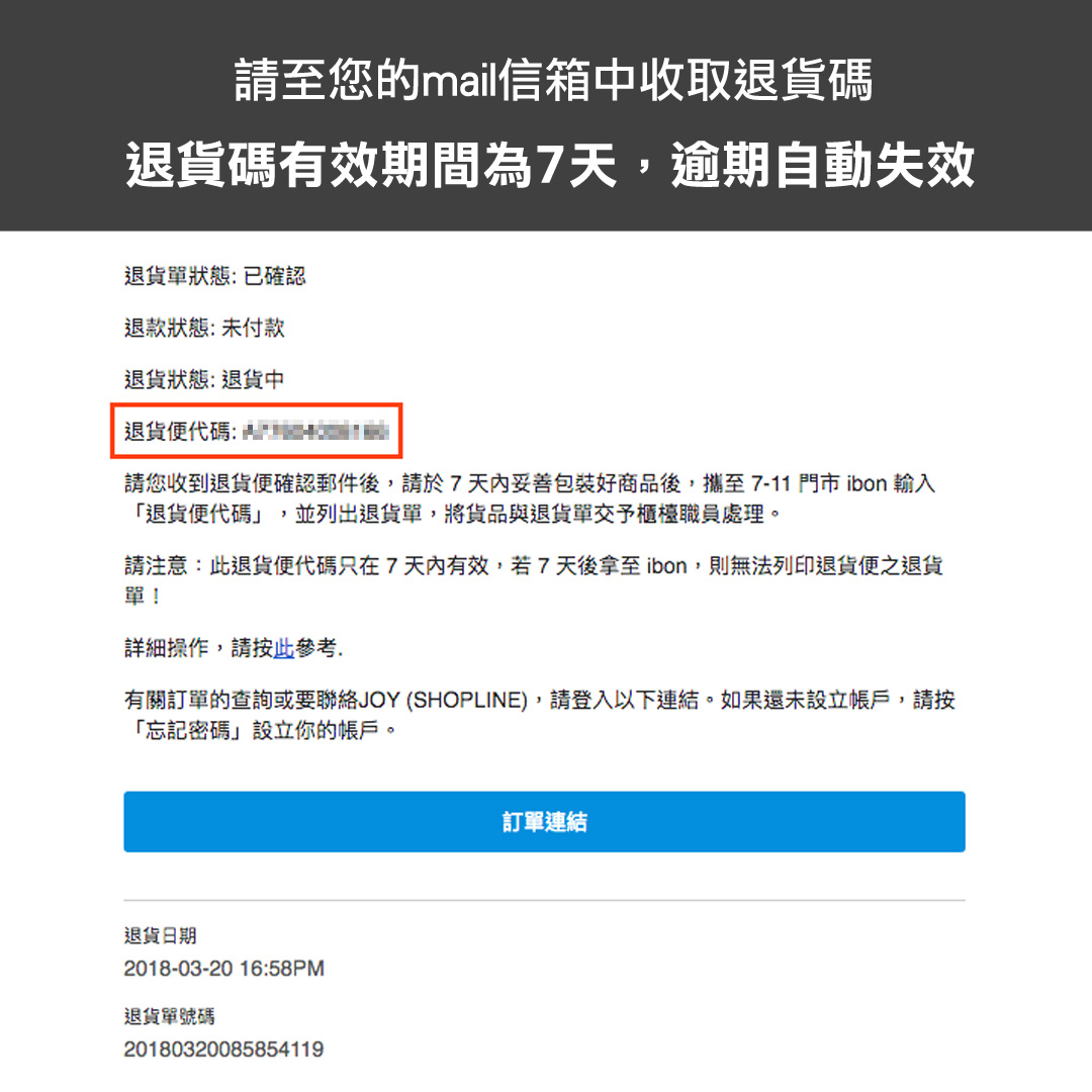 退貨碼提供時間與方式