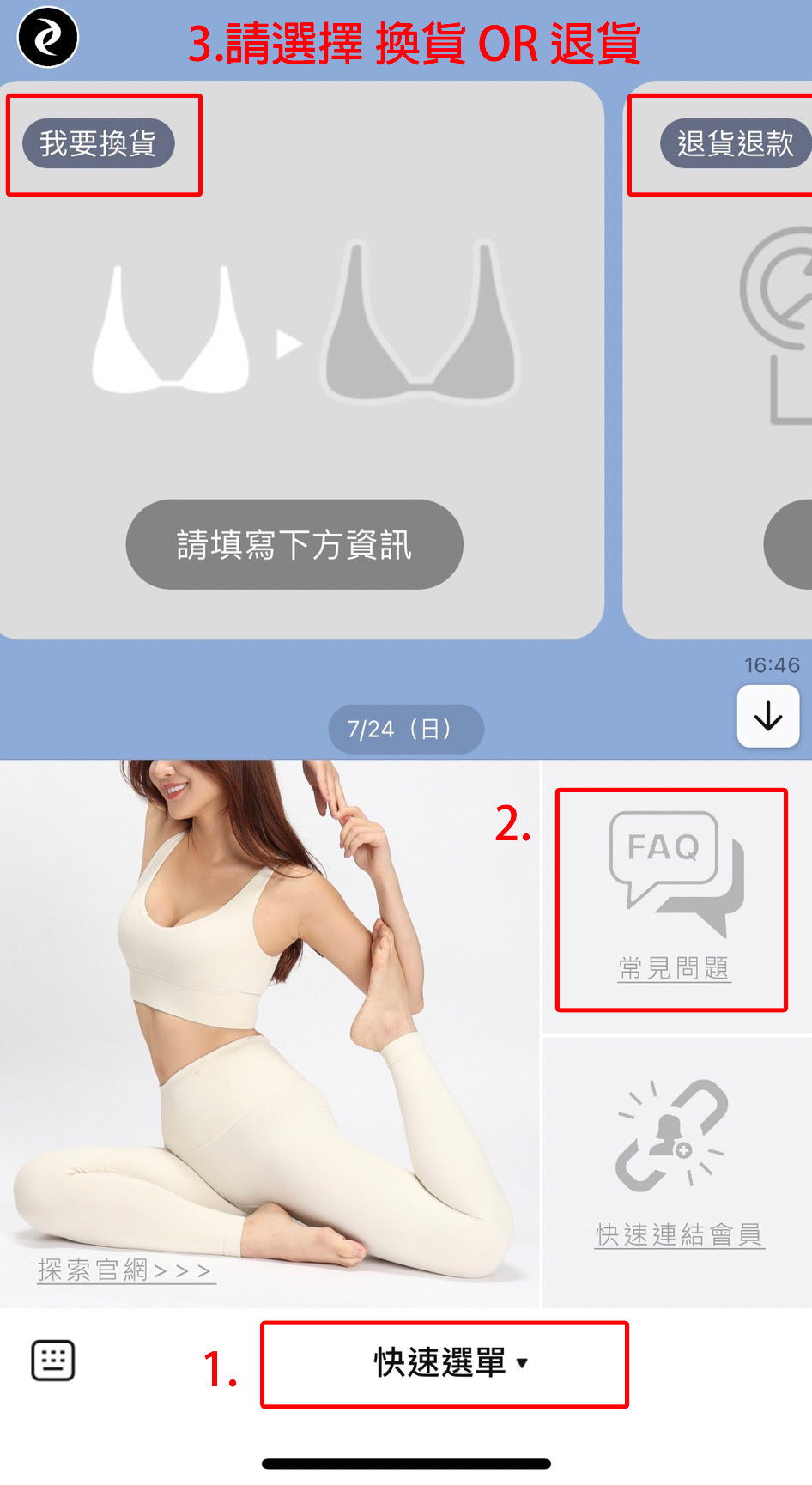 點選下方LINE@客服,進入請點選"快速選單"