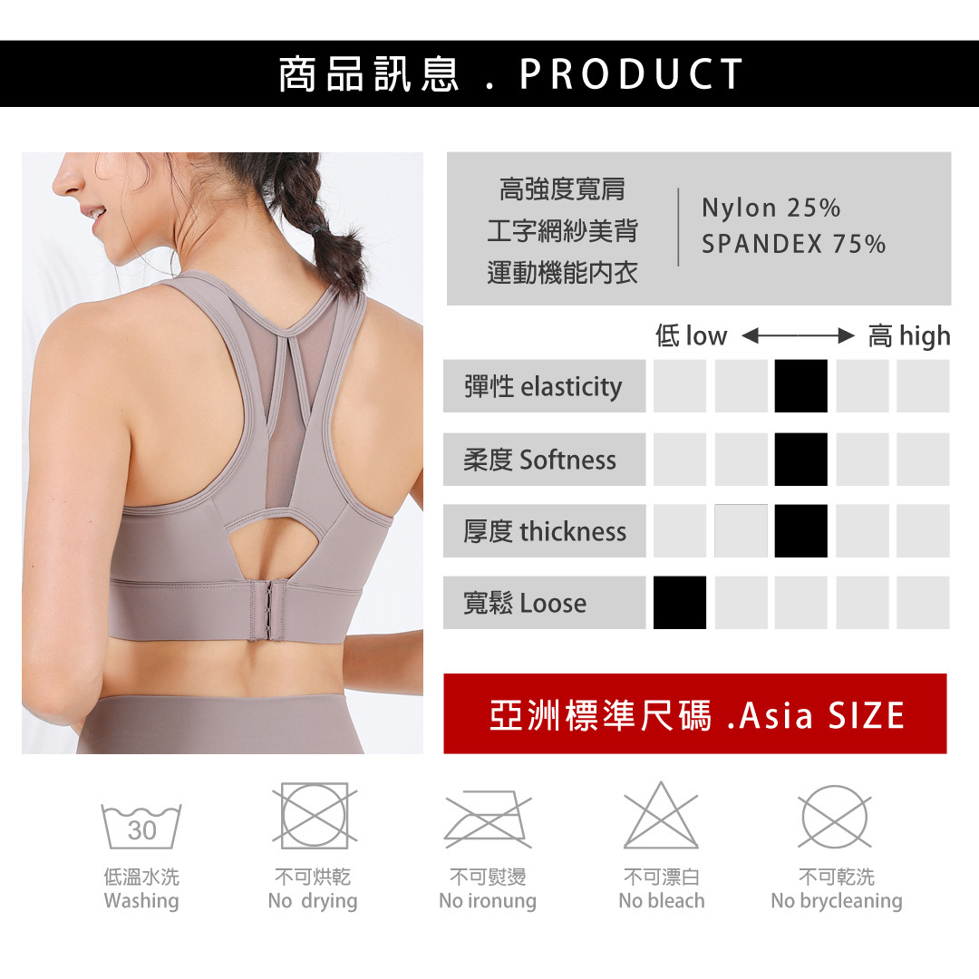 🖤 工字網紗美背拼接